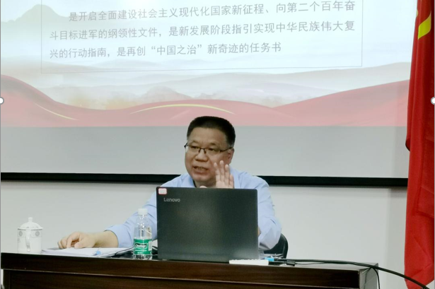 肖盈福副校院长为社区及共建单位党员60余人全面阐述了党的十九届五中全会的重大意义,深入分析了我国进入新发展阶段的重大意义、有利条件和重要特征,详细解读了2035年远景目标和“十四五”时期的发展目标、指导方针、重大任务、重大举措,重点围绕新发展成就、新发展背景、新发展阶段、新发展目标、新发展指南、新发展理念、新发展格局、新发展基石、新发展任务、新发展保证等十个方面展开分析解读,突出强调了必须坚持党的全面领导、确保党中央决策部署在基层在社区有效落实。