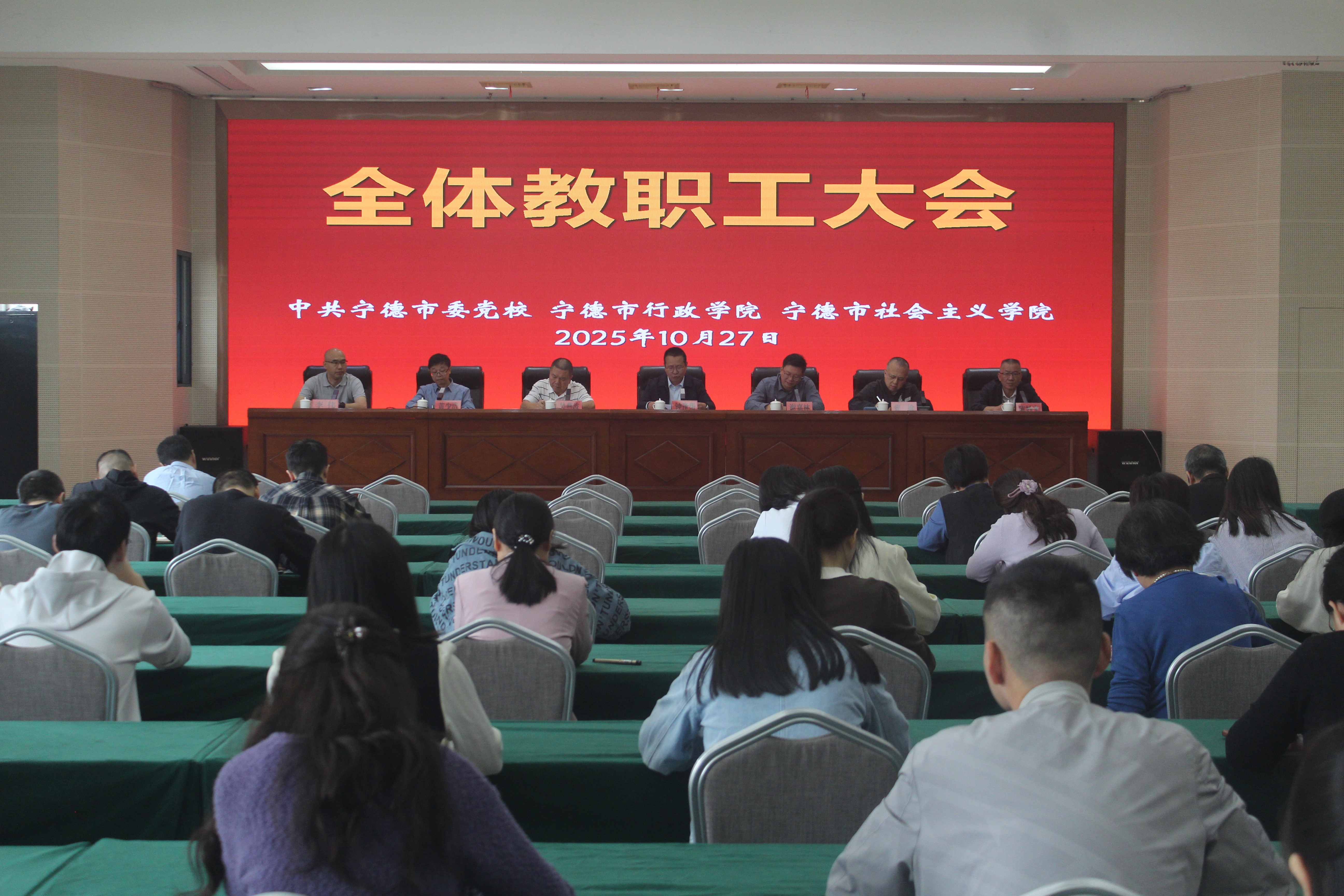 10月27日,宁德市委党校(行政学院、社会主义学院)召开全体教职工大会,传达学习习近平对党校(行政学院)工作作出的重要指示精神和全国党校(行政学院)工作会议精神,重温习近平总书记致中央社会主义学院建院60周年贺信精神。分管日常工作的副校(院)长钟逢帮作工作部署。全体教职工参加会议。