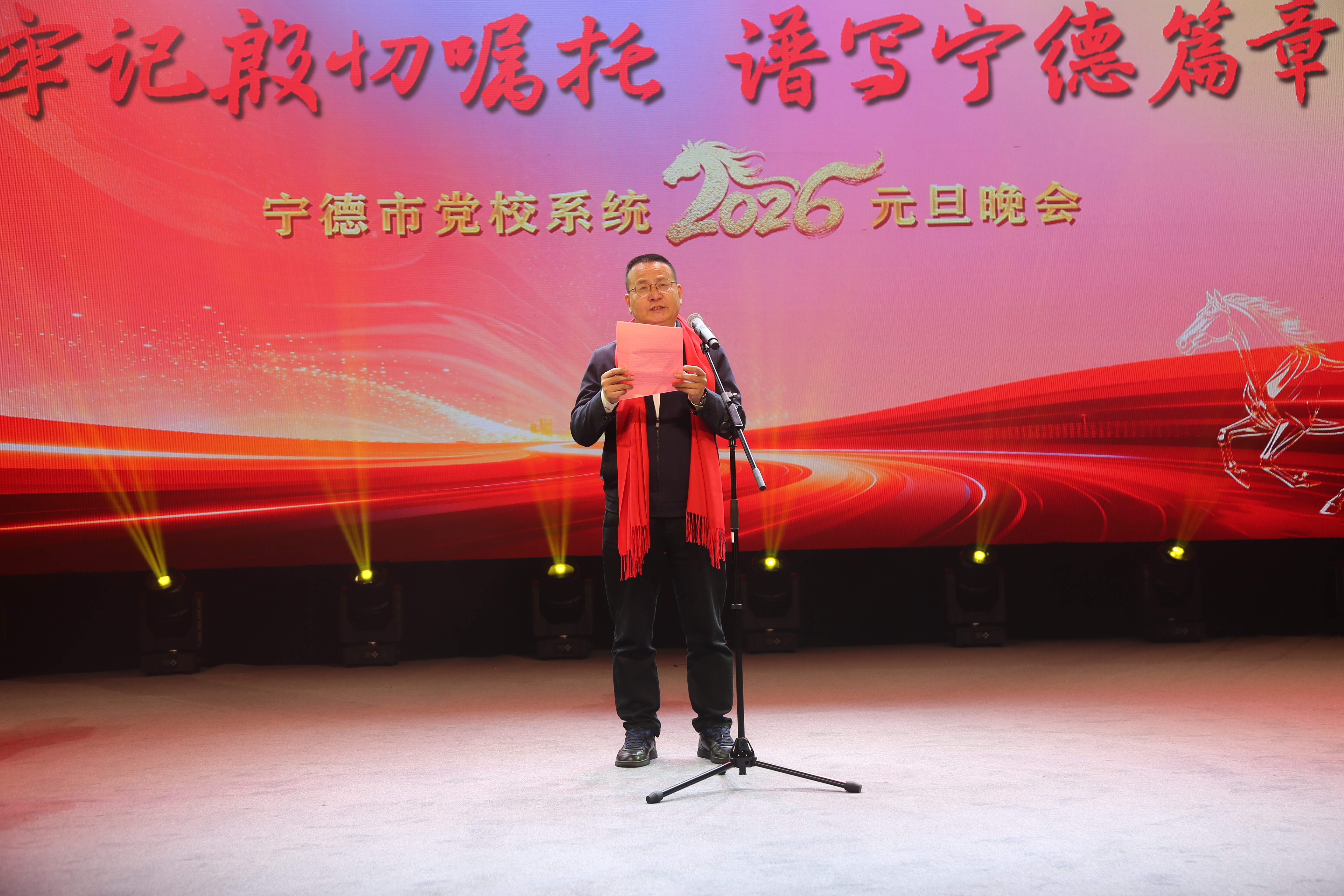 岁序更替,华章日新。12月30日晚,中共宁德市委党校礼堂内灯火璀璨、暖意融融,宁德市党校系统2026元旦晚会在此隆重举行。校领导班子成员与各县(市、区)党校分管日常工作的副校长,以及各县(市、区)党校同仁欢聚一堂,共辞旧岁、喜迎新年,用文艺盛宴展现党校人的初心使命与奋进风采。