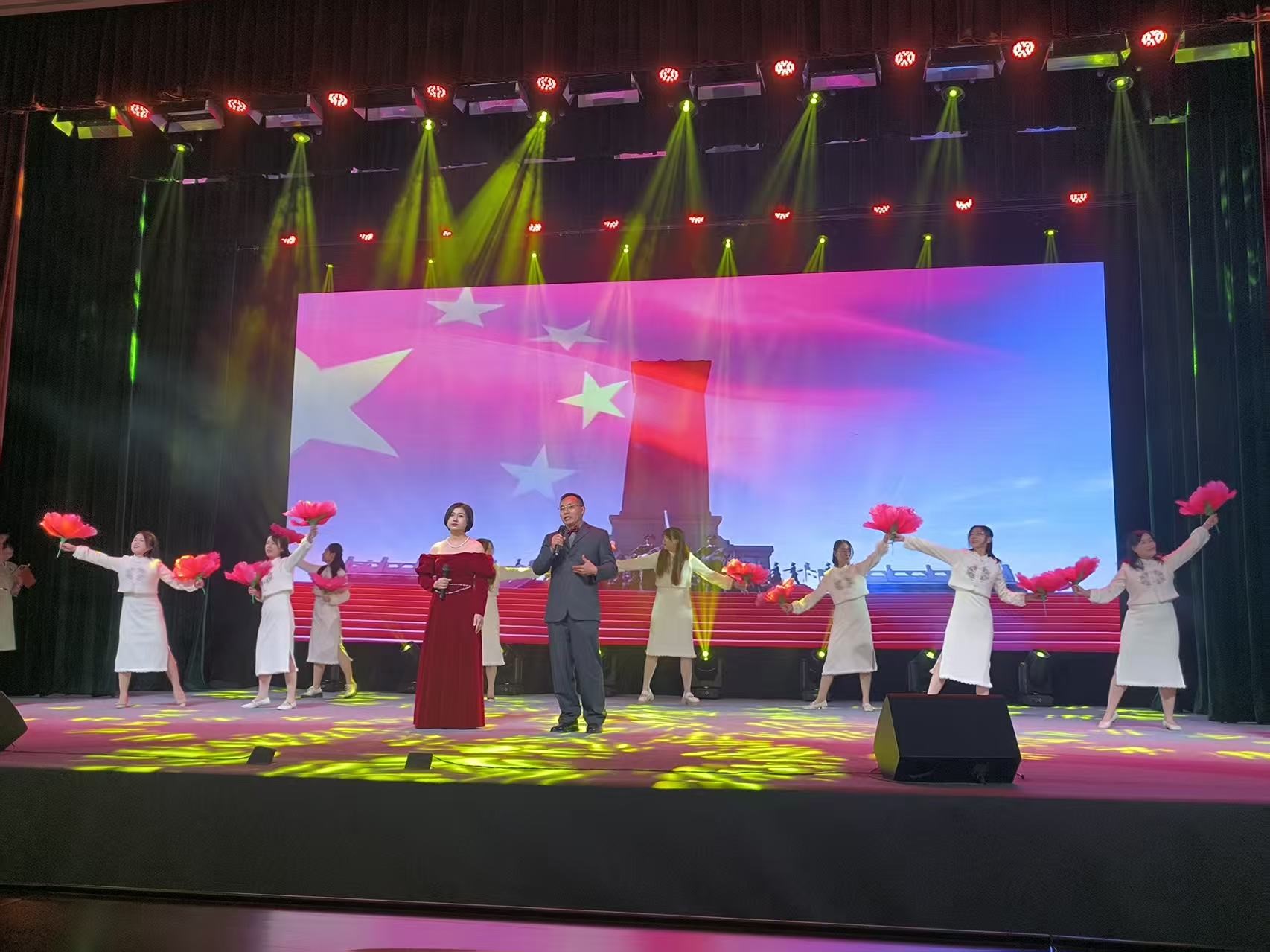 一个多小时的演出高潮迭起、掌声不断,每一个节目都由教职工自编自导自演,既饱含对党的忠诚与热爱,又彰显了党校特色,生动诠释了“为党育才、为党献策”的初心使命。最后,晚会在歌舞《我和我的祖国》中落下帷幕,全场人员齐声高歌,歌声中满是团结奋进的力量。