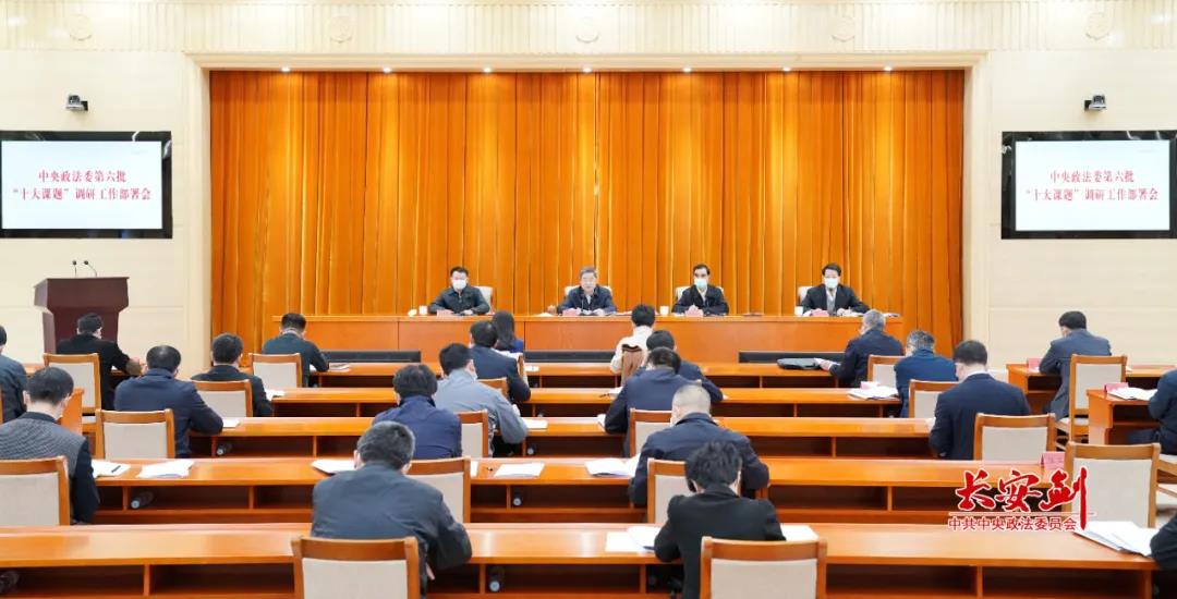 近日,中央政法委召开第六批“十大课题”调研工作部署会,认真学习贯彻党的十九届五中全会、中央全面依法治国工作会议和平安中国建设工作会议精神,总结中央政法委第五批“十大课题”调研工作,部署第六批“十大课题”调研任务,推动新时代政法工作创新发展。中央政法委秘书长陈一新强调,调研工作要重“选题”“破题”“领题”“评题”,以严谨细致的作风,以科学方法手段,促进调查研究常做常新常效,为新时代政法工作创新发展开路。